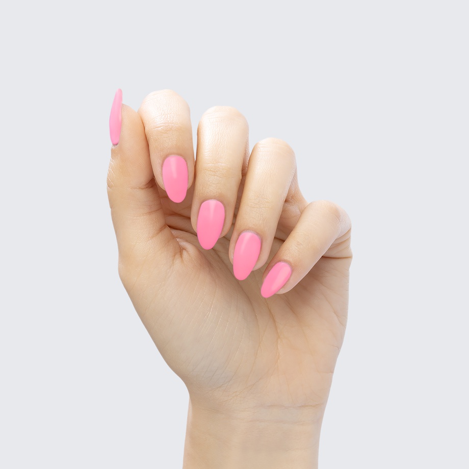 Pastel bubble gum pink. Neon. Bright. Light. Opaque. Cool undertone.